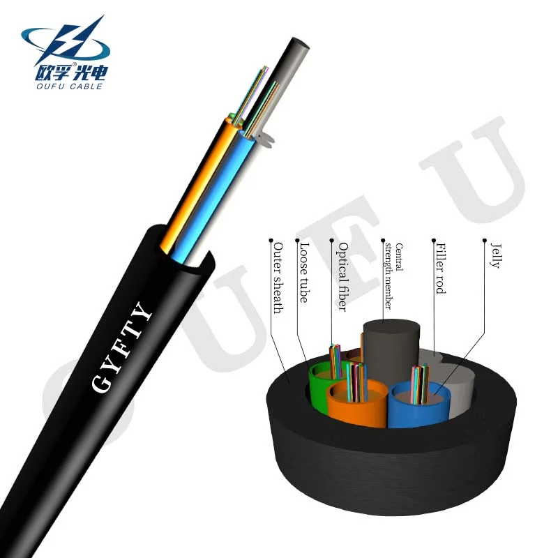Totalment cable dielectric con fibras establidas en un tubo de buffer que trobó arredol o membro central dielectric. The cable core is protected with water-blocking material to prevent water intrusion and migration, reinforced with dielectric fiber yarns, And covered with black polyethylene outer Sheath.